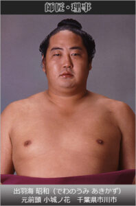 出羽海一門 2022/9/23 2023/7/13 ◇出羽海の一門 統師;出羽海(元幕内 荻ノ花) 所属部屋: 出羽海、入間川、尾上、春日野、木瀬、境川、式秀、 武隈、立浪、玉ノ井、藤島、二子山、武蔵川、山響