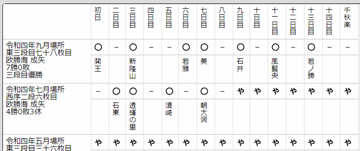 東の三段目十五枚目に上がり、5勝2敗。
